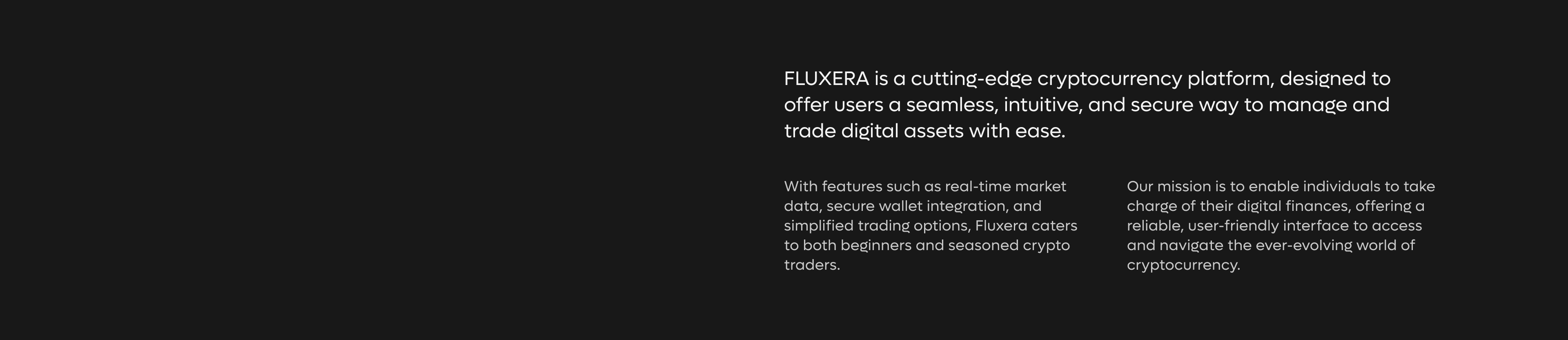 FLUXERA is a cutting-edge cryptocurrency platform, designed to offer users a seamless, intuitive, and secure way to manage and trade digital assets with ease.